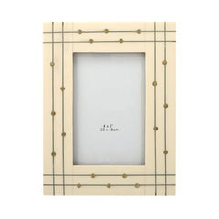 The Gretel Bone Frame is crafted with hand-applied bone inlay, arranged in a subtle geometric pattern. Its natural tonal variations and artisanal detailing make each frame one of a kind, adding quiet character to shelves, consoles or bedside tables.