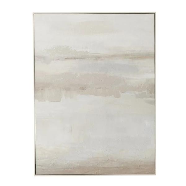 The Dew Oil Canvas captures a serene blend of soft blues, whites, and neutrals, evoking the calm beauty of sky and sea. A modern yet timeless piece perfect for any space.