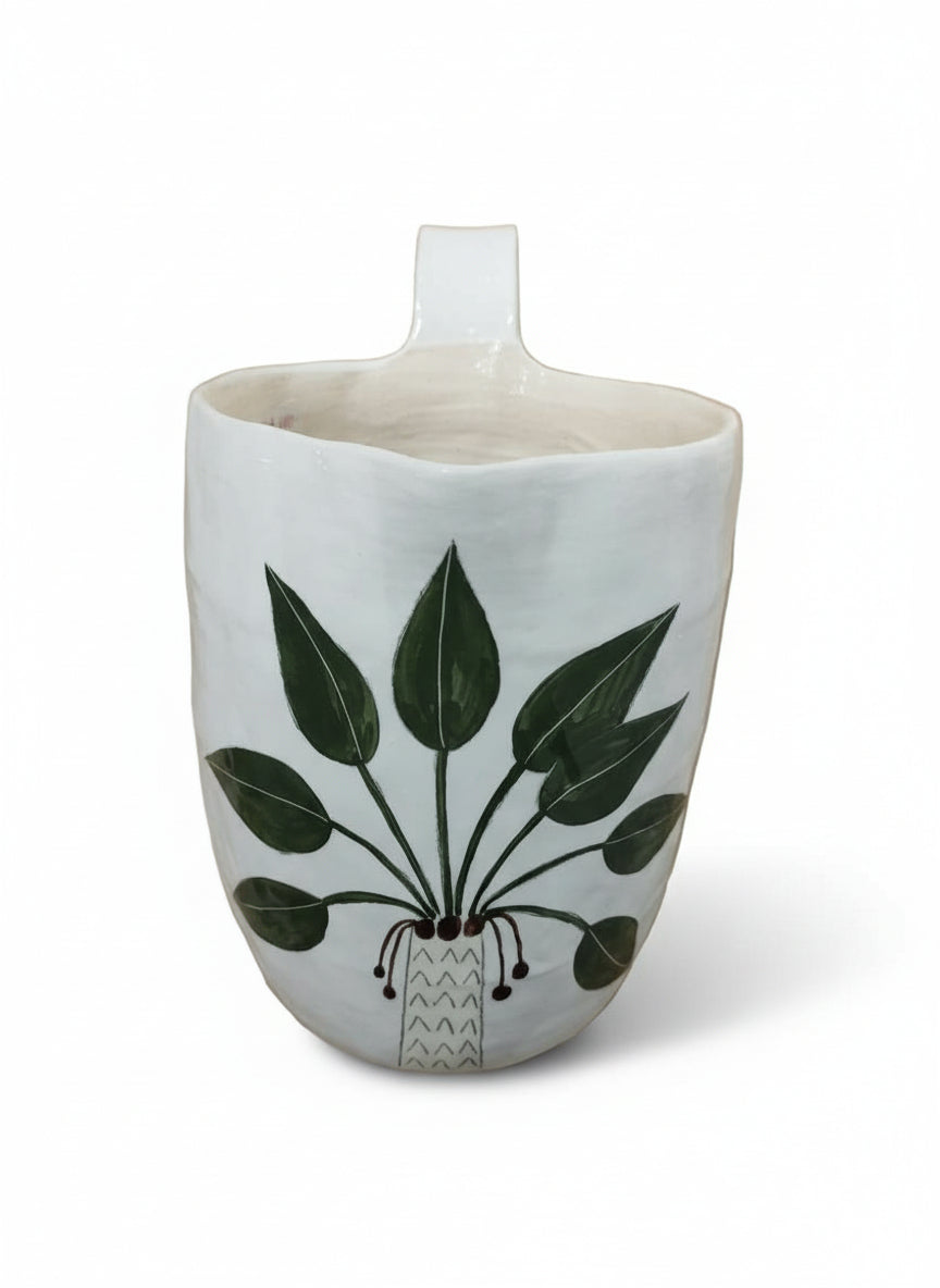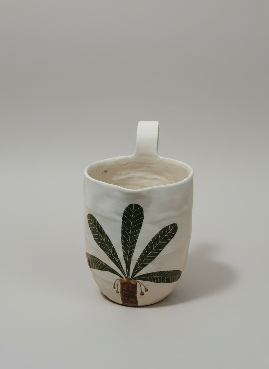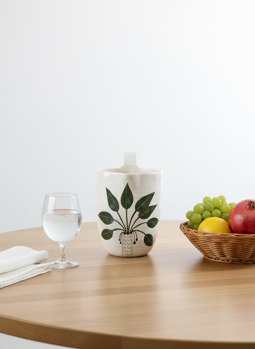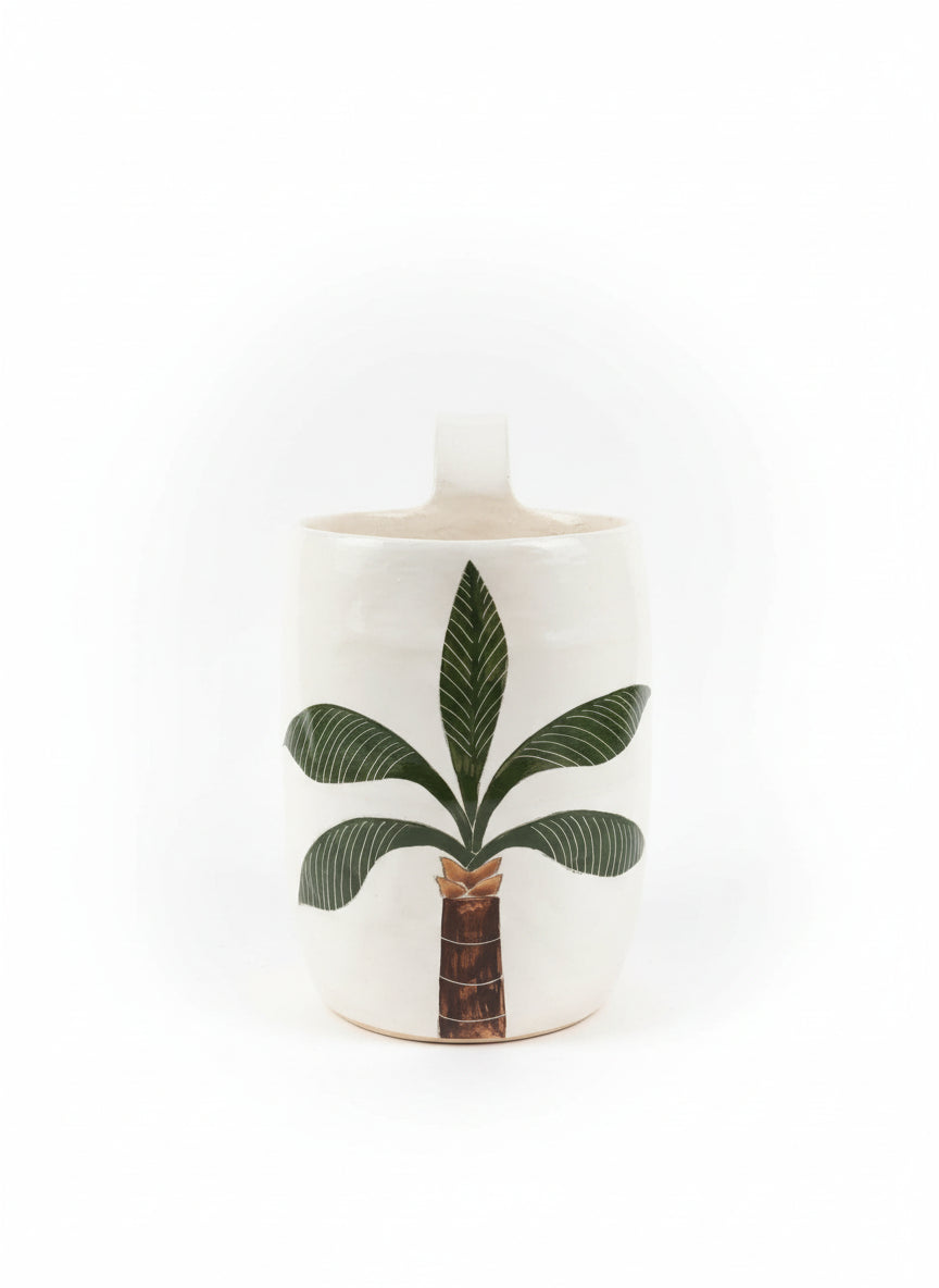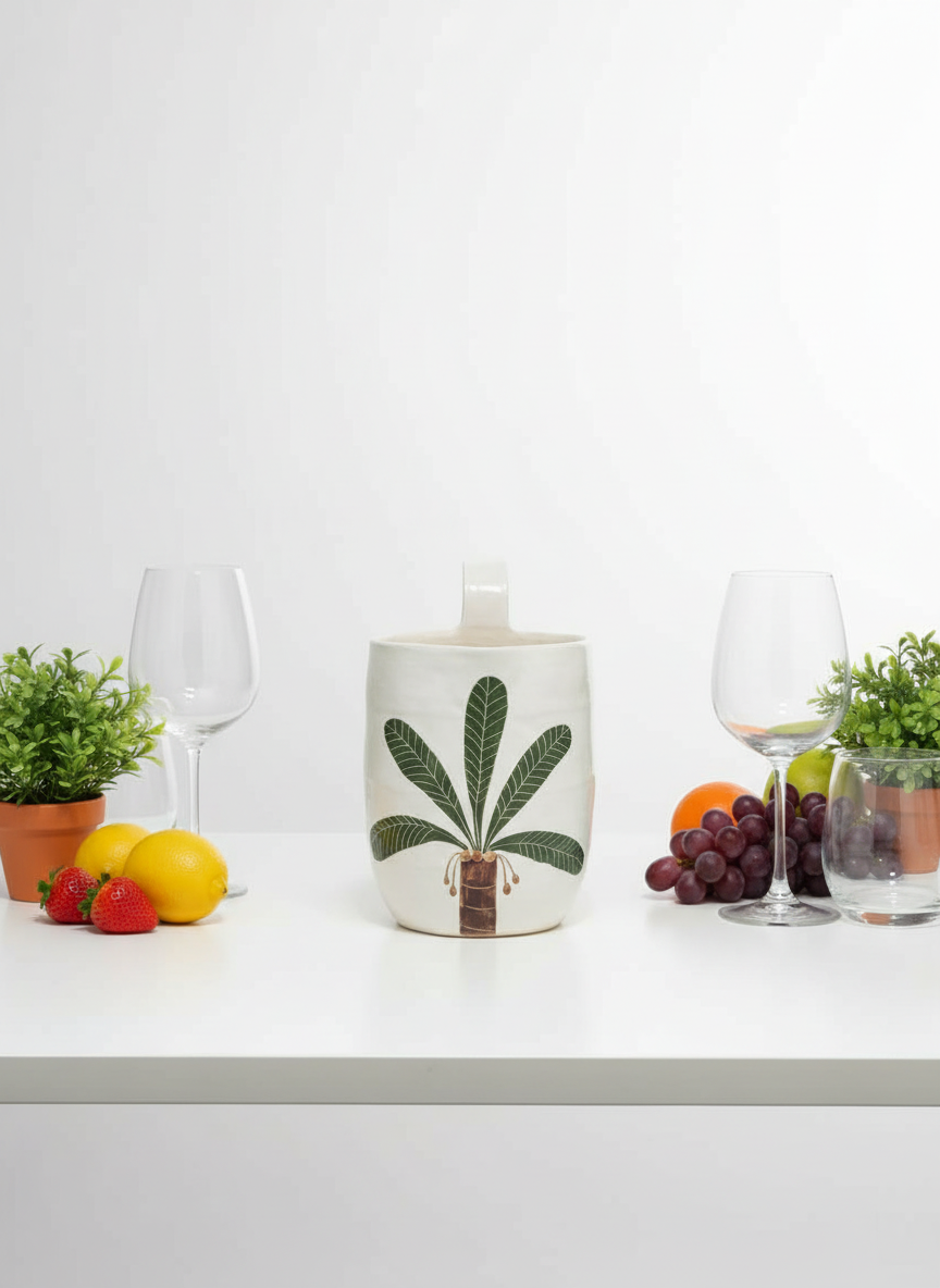 This lovely white Jug Palm is great for serving milk or cream and doubles as a vase for your favourite flowers. Pair it with other colourful pottery pieces to build your own unique set.