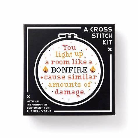 A crafty way to pass the time with a cheeky twist. The Brass Monkey Cross Stitch Bonfire kit comes with everything you need to stitch your own little piece of sass. Playful, giftable, and perfect for anyone who loves their crafts with a spark.