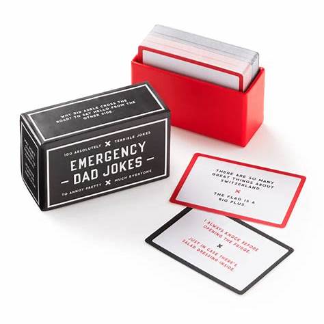 A pocket full of groans and giggles. Emergency Dad Jokes is a little box of classic one liners and puns, ready to be pulled out whenever the mood calls. Quirky, compact and giftable.