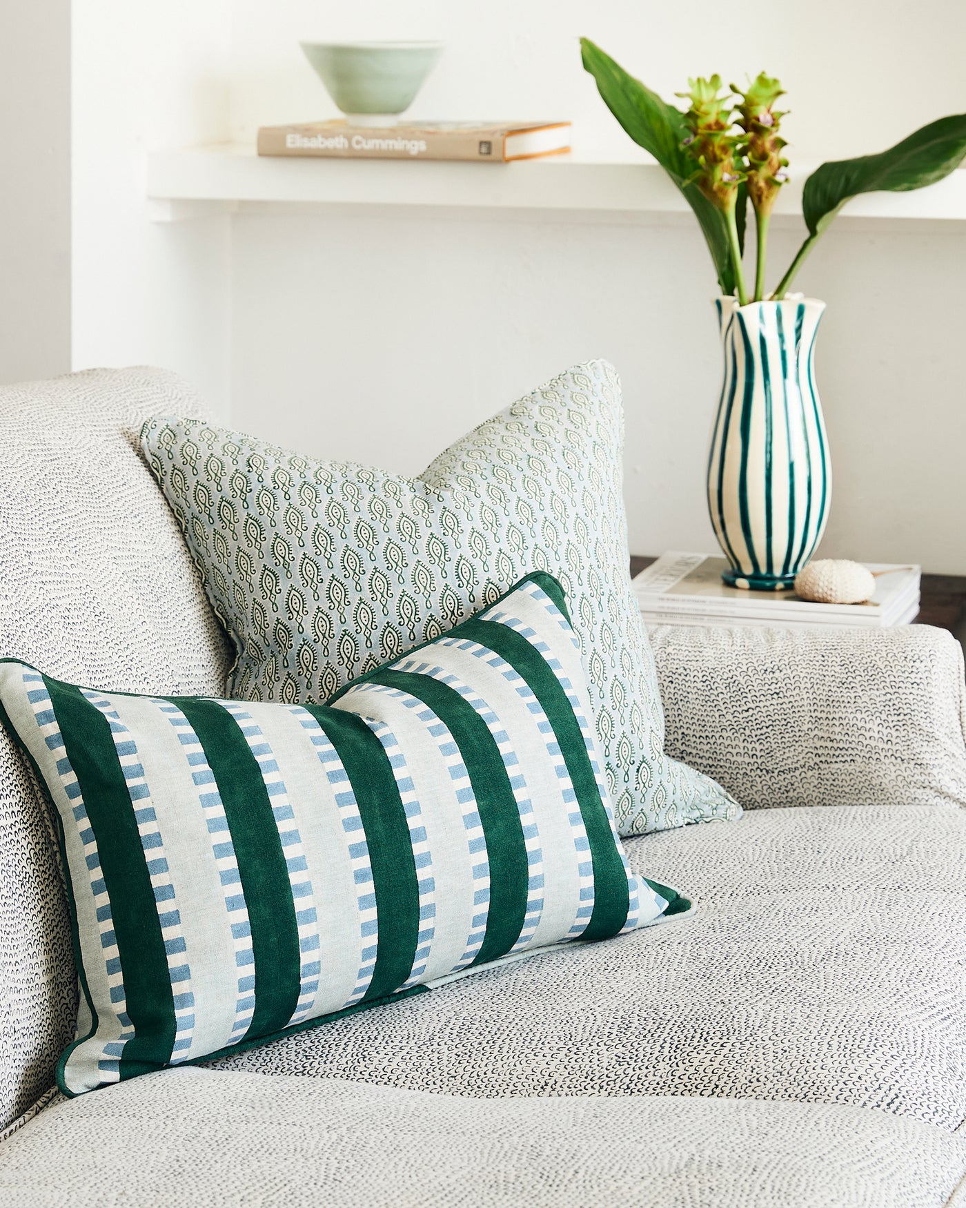 Add some depth of colour to your room with our Malabar cushion. Featuring a simple and striking buti motif, Malabar has been hand block printed by skilled artisans.