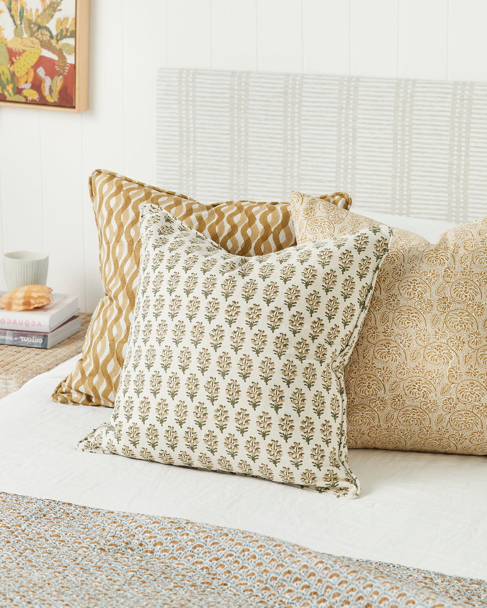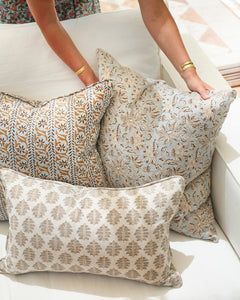 Fossano is a lively floral full of movement, with swirling vines and bold blooms inspired by antique woodblock textiles. Hand block printed by skilled artisans.