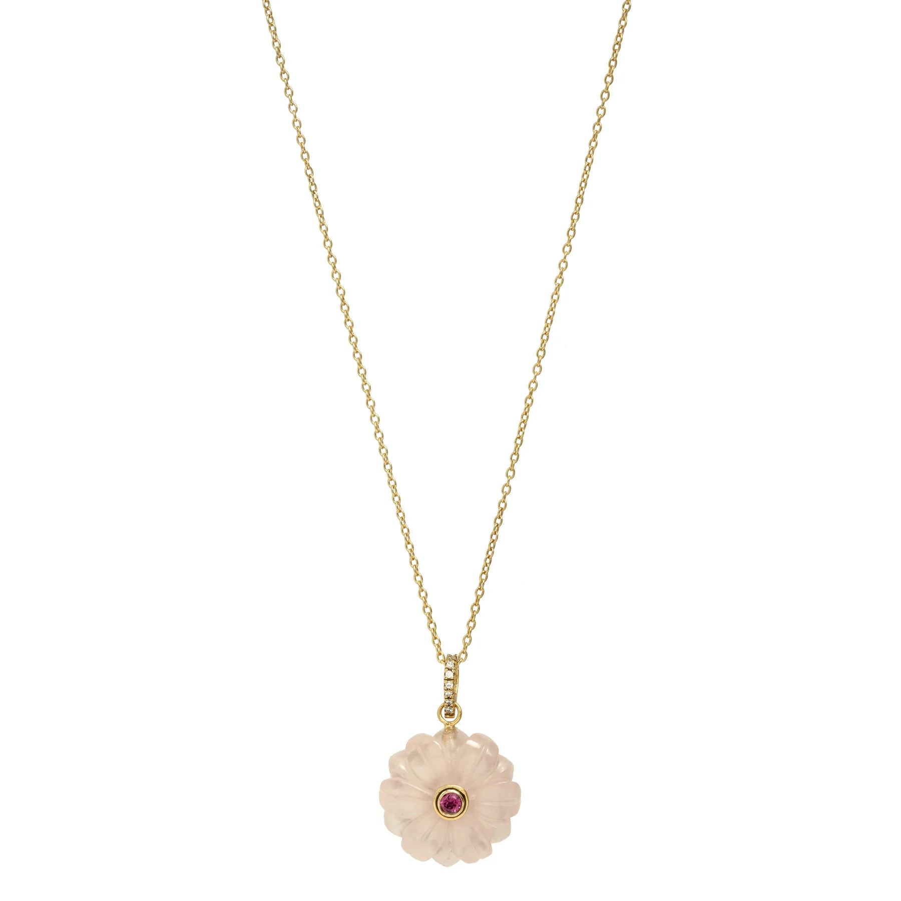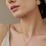The Camellia Necklace is handcrafted in sterling silver with 18KT gold plating and finished with natural hand-carved gemstones. Inspired by the camellia flower, a symbol of love and elegance, its design captures the soft beauty of petals in a refined floral form.