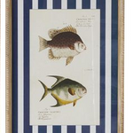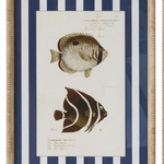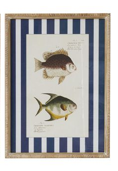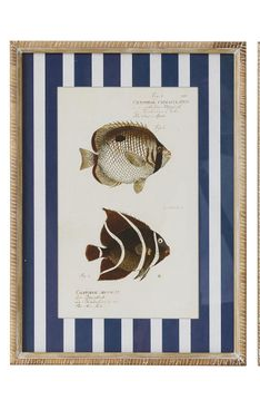 The Aquatic Glass Print brings a coastal charm with its detailed fish illustrations and bold striped backdrop. A striking wall feature that blends vintage style with seaside elegance.