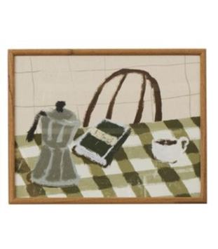 The Caff Glass Print brings a touch of everyday charm to your walls, with simple scenes of coffee pots, cups, and checkered table settings. A playful nod to daily rituals, this piece adds warmth and character to kitchen and dining spaces.