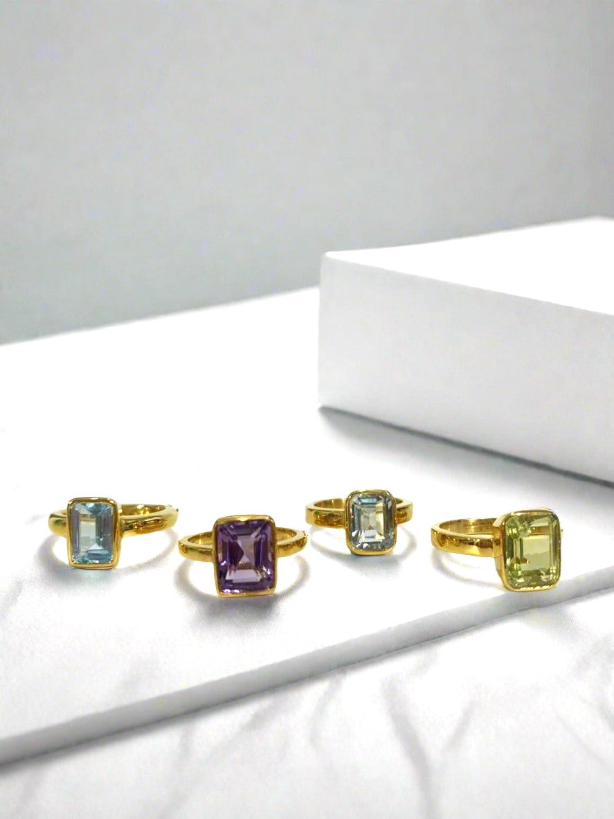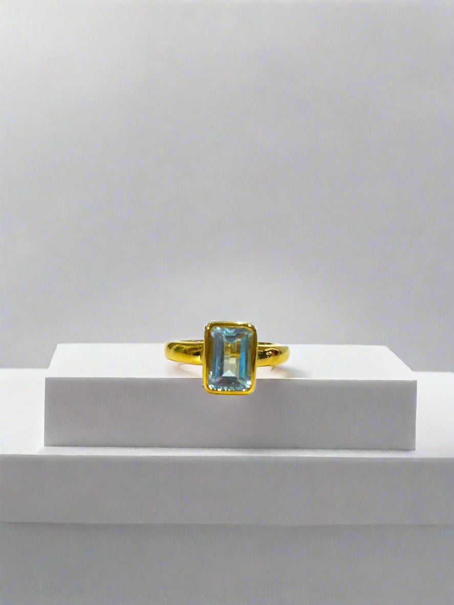 Experience the exquisite allure of our Blue Topaz Cocktail Ring, crafted with meticulous attention to detail. Each ring is thoughtfully created by skilled artisans who transform fine 925 Sterling Silver and luxurious gold plating into a setting that perfectly showcases the topaz's luminous blue tones.