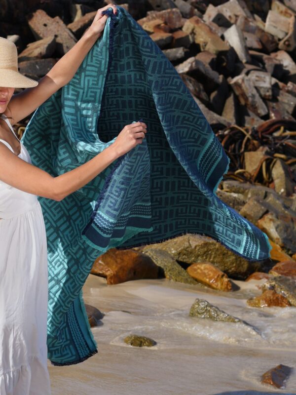 • Woven in jacquard with a honeycomb weaving pattern combined with bold geometric designs