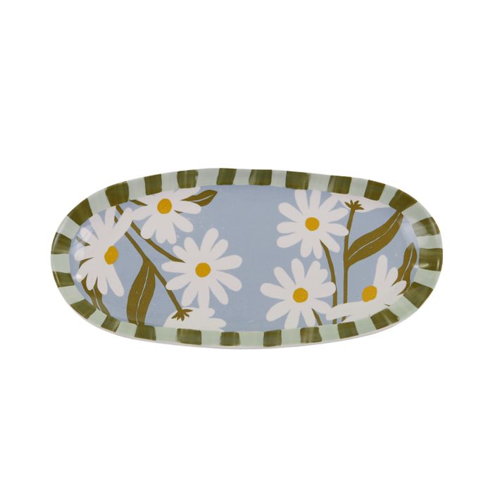 The Lulu Ceramic Oval Platter is a joyful statement piece for entertaining. Adorned with hand-painted florals and framed with a striped border, its generous size makes it perfect for serving appetisers, desserts, or sharing dishes with flair.