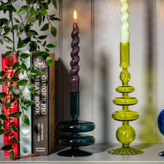 Crafted from high-quality glass featuring a pear green tone. This taper candle holder is ideal for adding a touch of elegance to dining tables, mantelpieces, or as a sophisticated gift.