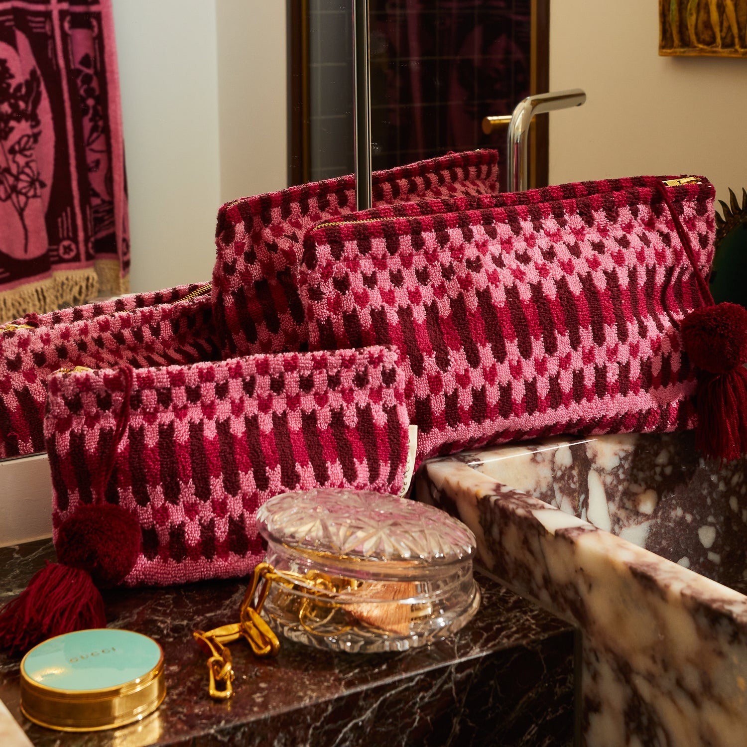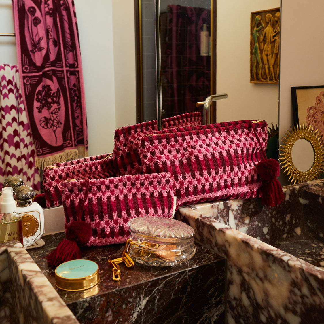 Keep your essentials organised in style with our perfectly practical pouches. Whether you’re toting your collection on the go or sorting out your bathroom storage, there’s a safe and secure place for everything.