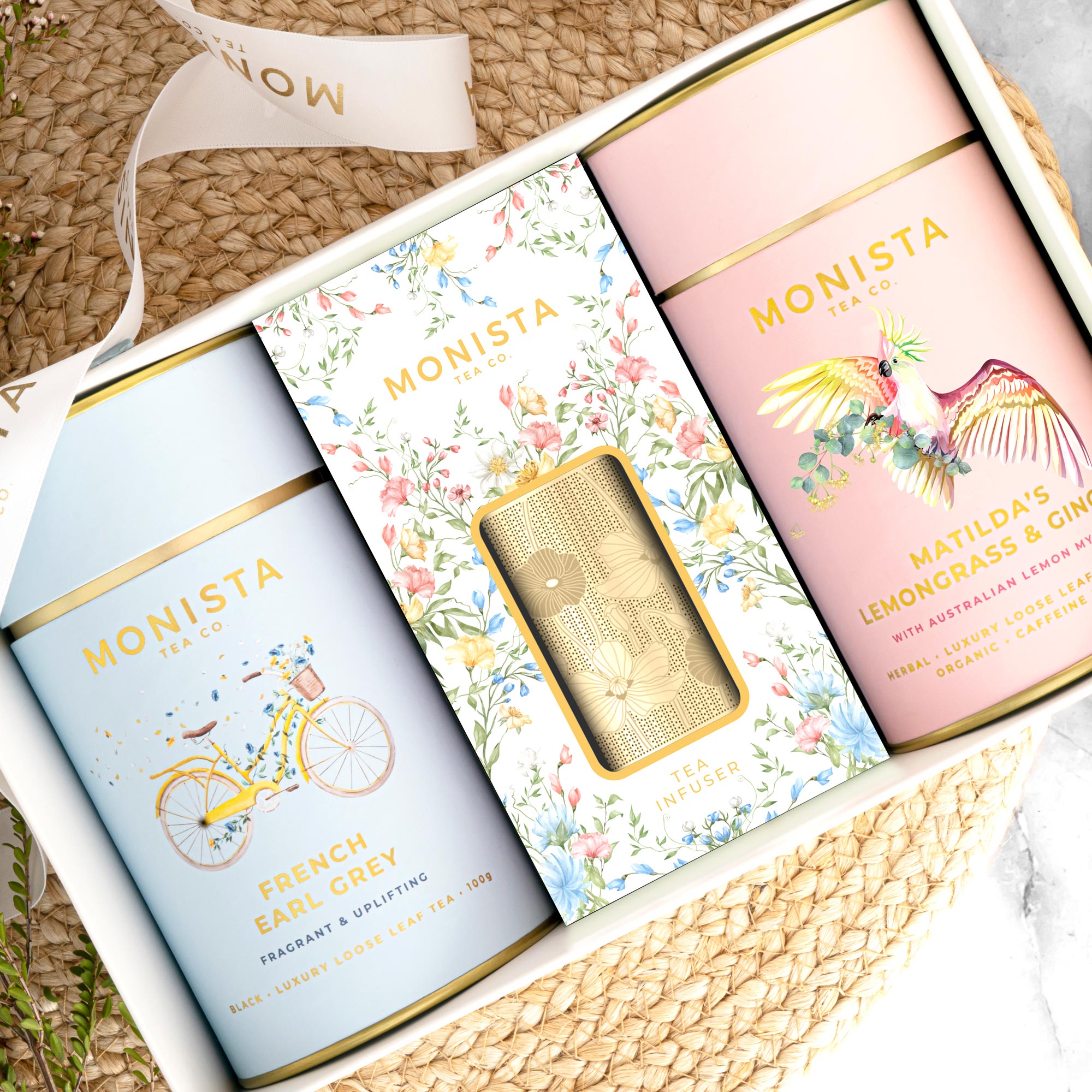 The Tea For A Lady Gift Pack combines two elegant blends with a gold stick infuser, thoughtfully presented in a gift box. French Earl Grey offers a fragrant and uplifting cup, while Matilda’s Lemongrass & Ginger with Australian Lemon Myrtle brings a zesty, refreshing note.