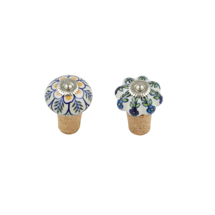 The Penny Ceramic Bottle Stopper is a charming way to preserve your favourite wines and spirits. Featuring hand-painted ceramic tops in floral-inspired designs with a natural cork base, each piece is as decorative as it is practical.
