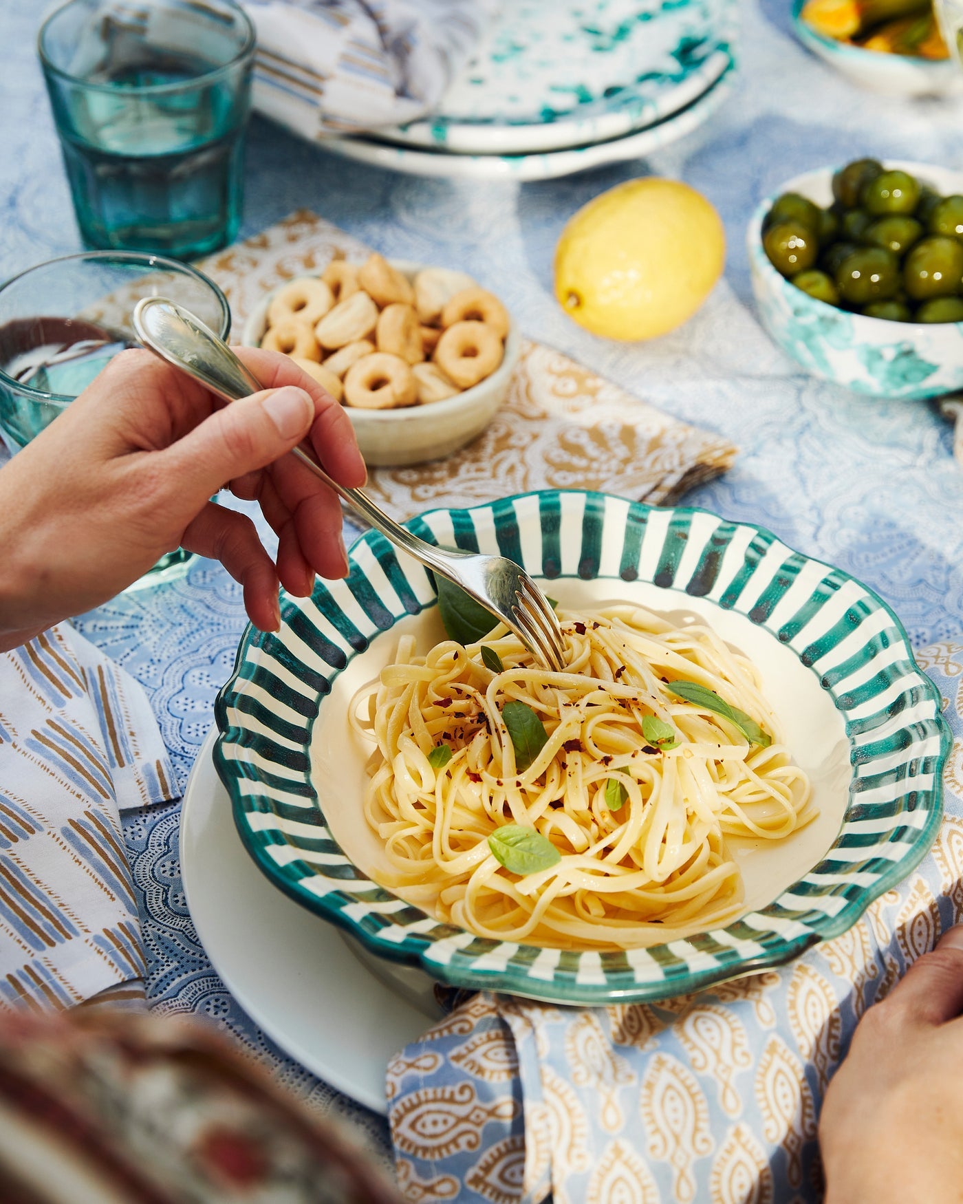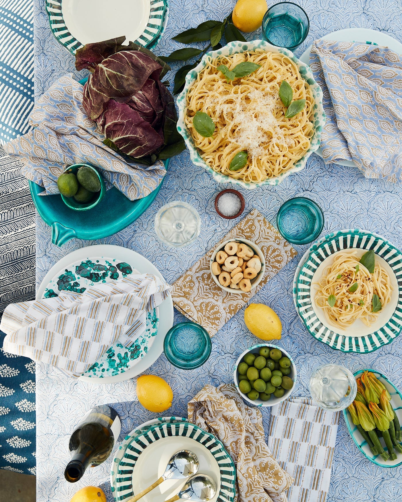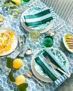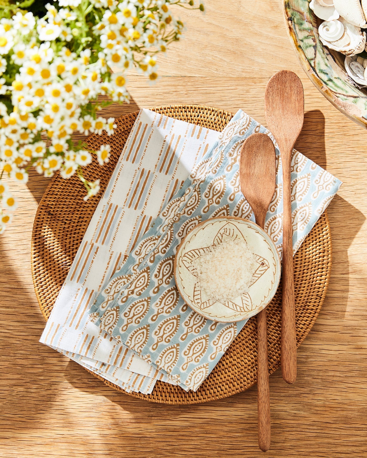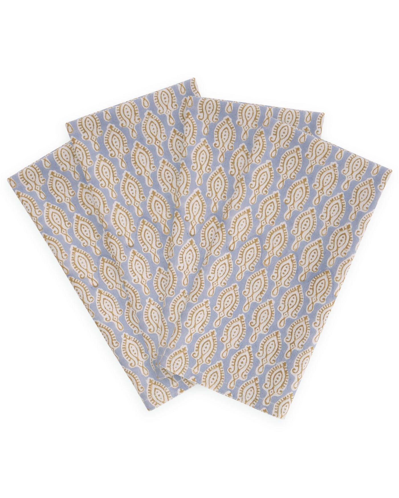 The simple and striking buti motif of Malabar has been reimagined in our airy Sahara colourway. These napkins have been block printed by skilled artisans.