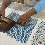 Much like the mosaic walls which inspired this design, Bejmat has a luminous quality. Bejmat has been hand block printed by skilled artisans.