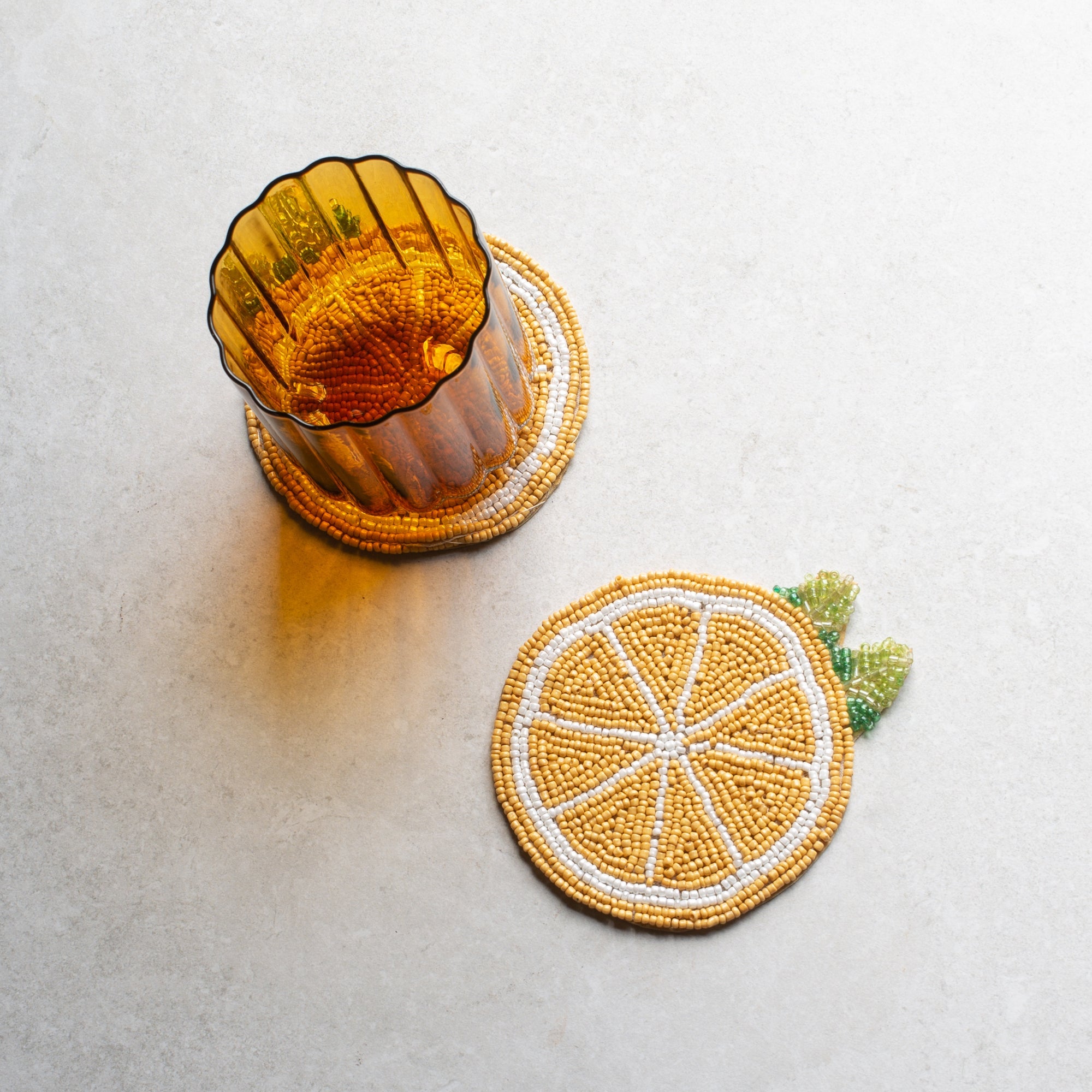 Limone Beaded Coaster Set - Yellow