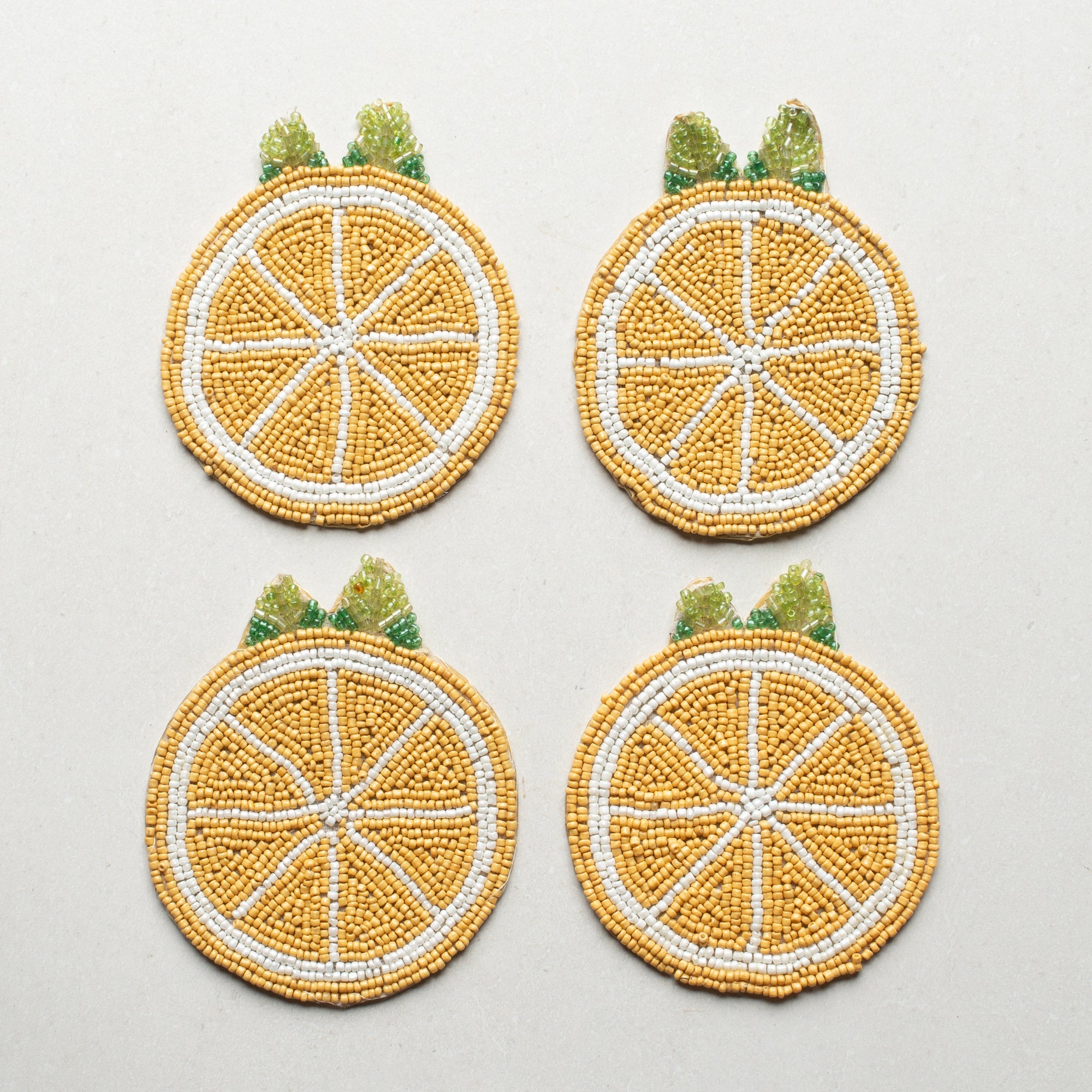 The Limone Beaded Coasters bring a splash of sunshine to your table. Hand-beaded in zesty yellow, they are fresh, fun and functional, a set of four designed to brighten any gathering.